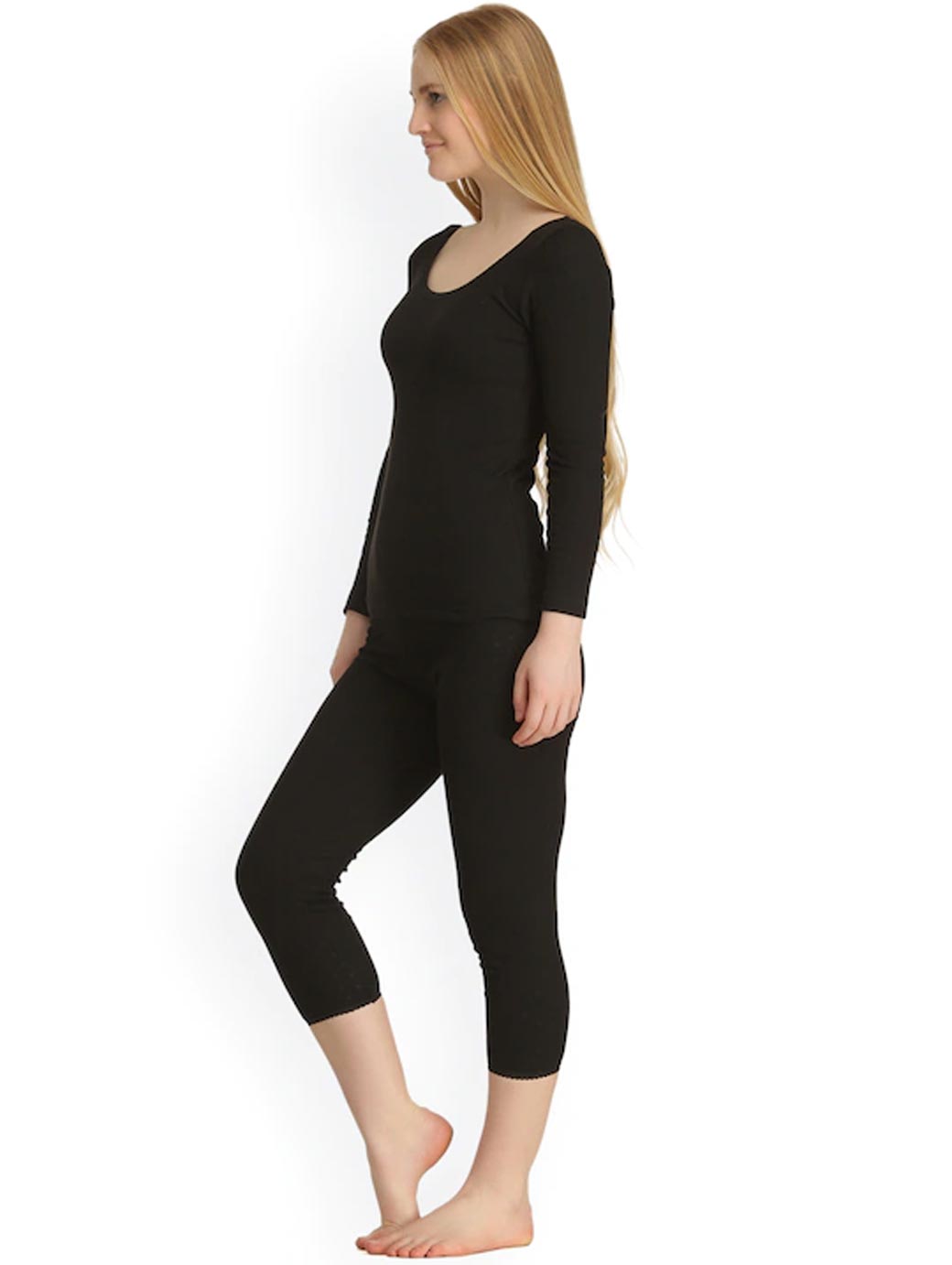 This black thermal set consists of a top and a pair of leggings