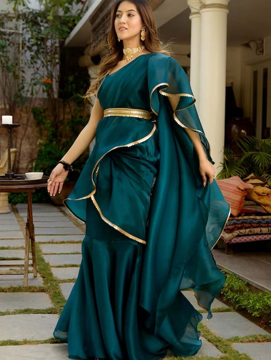 Green Organza Ready to Wear Saree