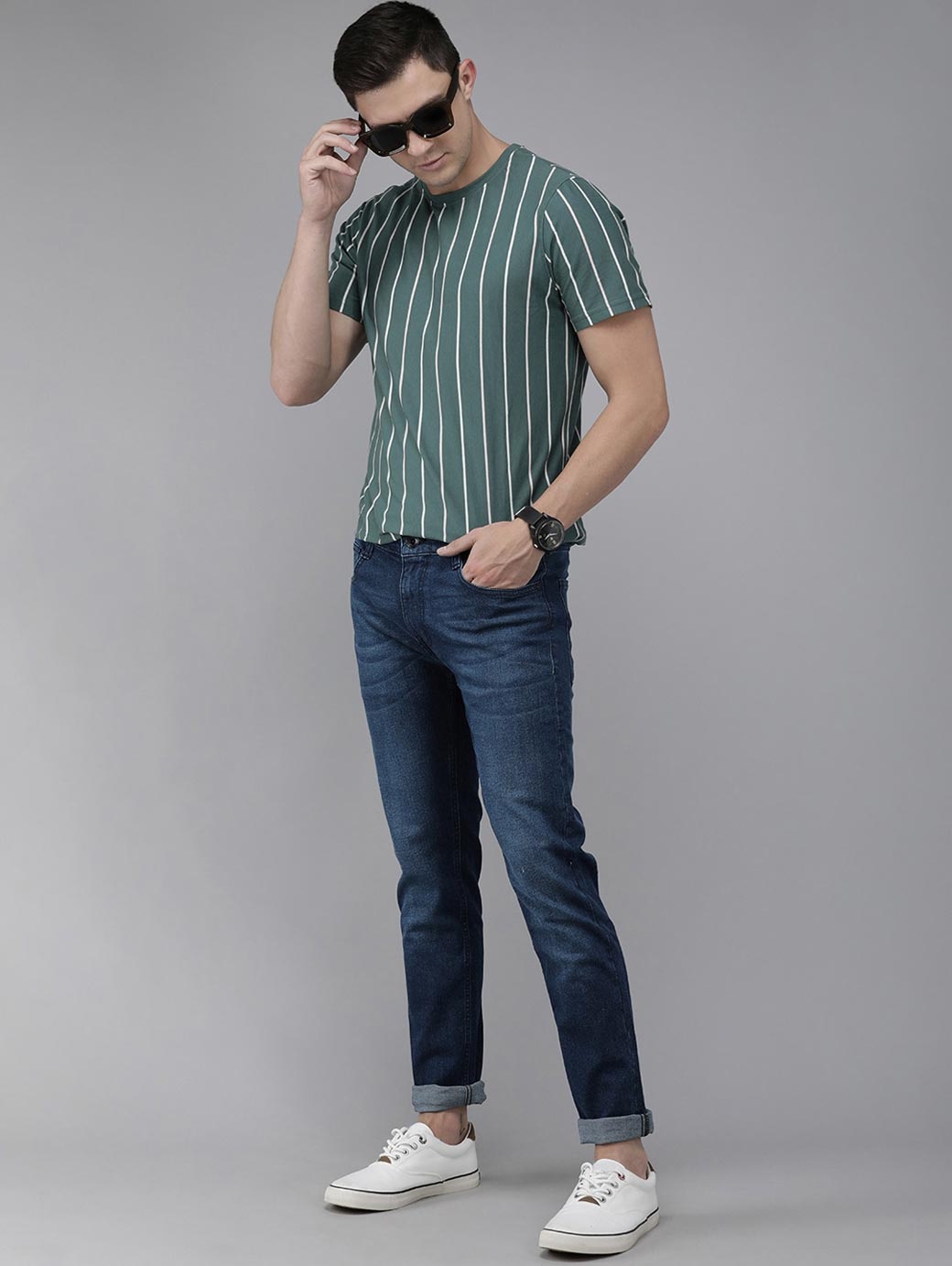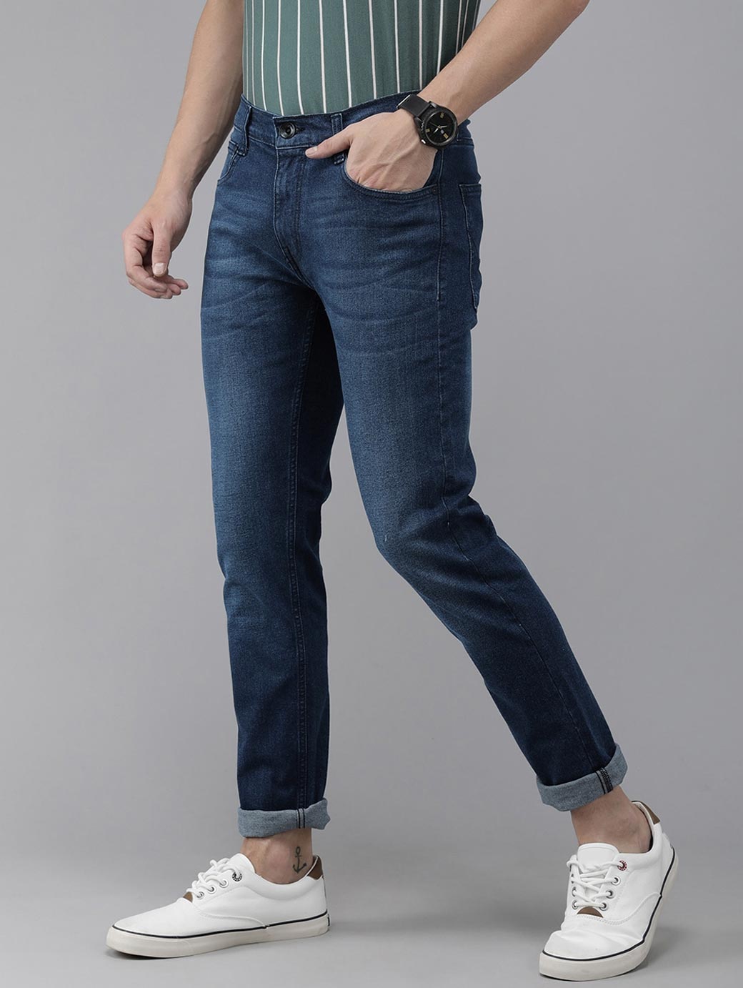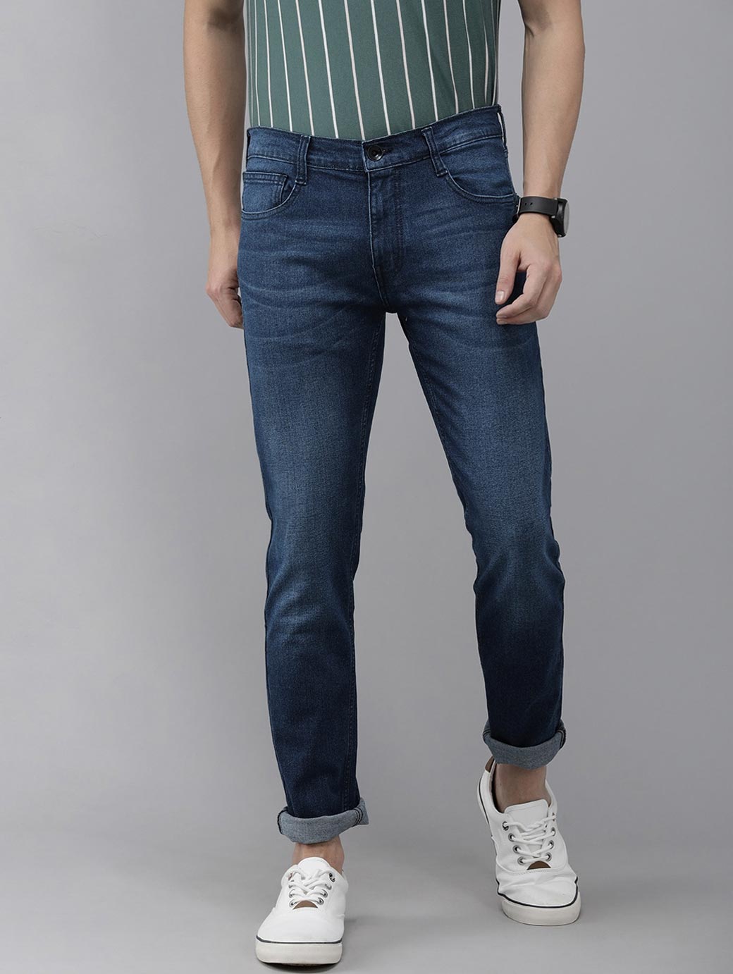 - Medium shade, light fade blue jeans