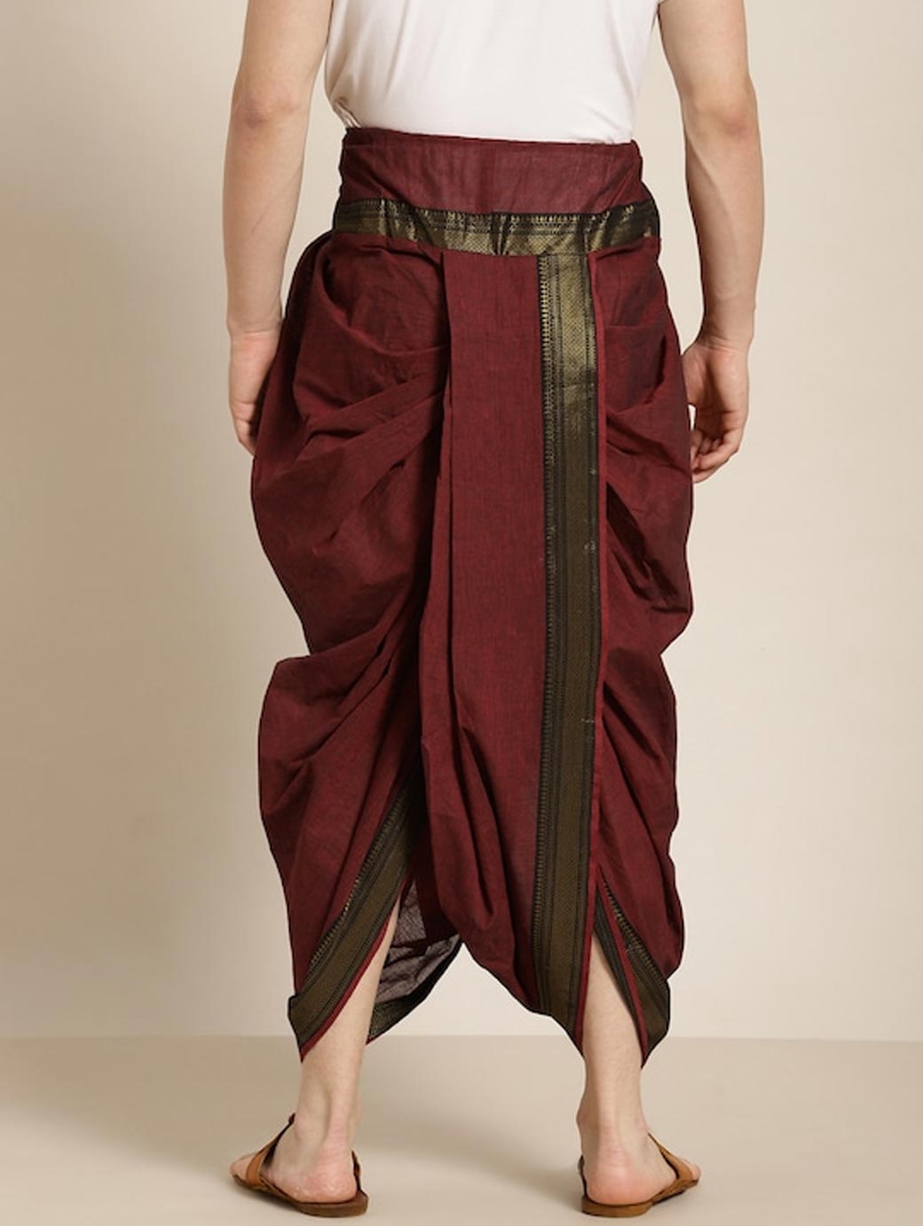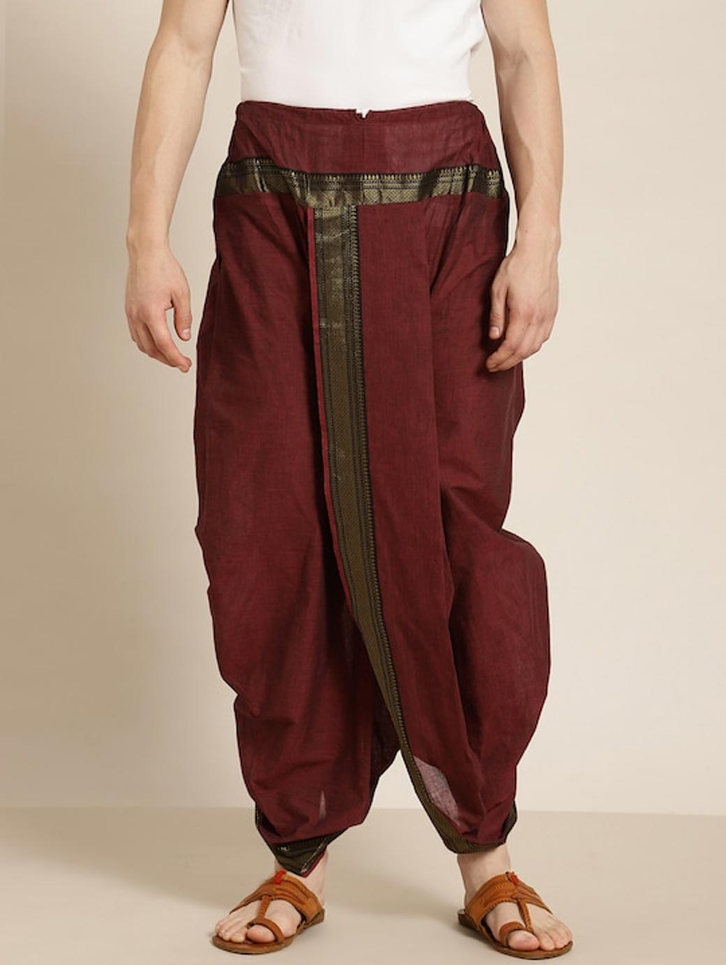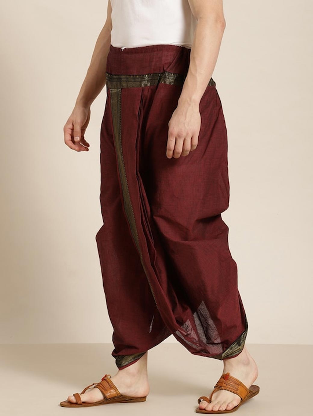 Solid dhoti pants with border detail, has a drawstring closure