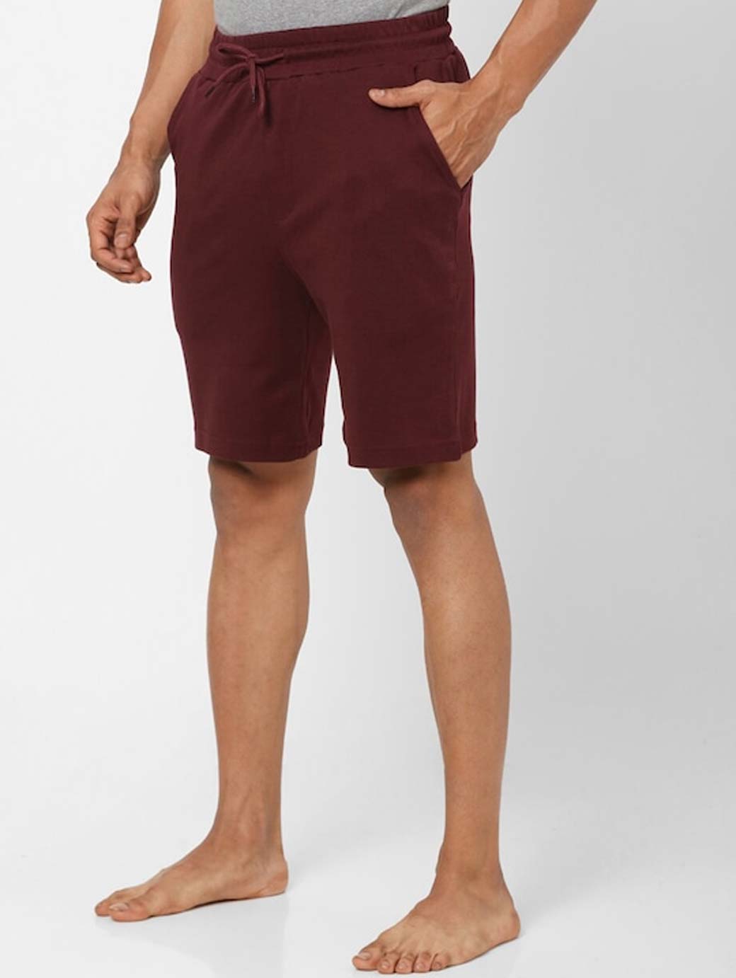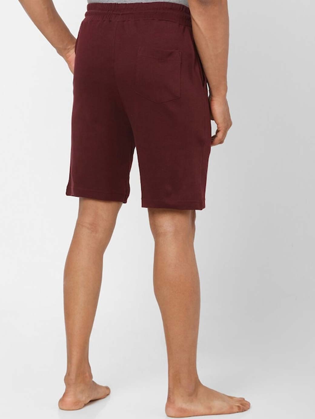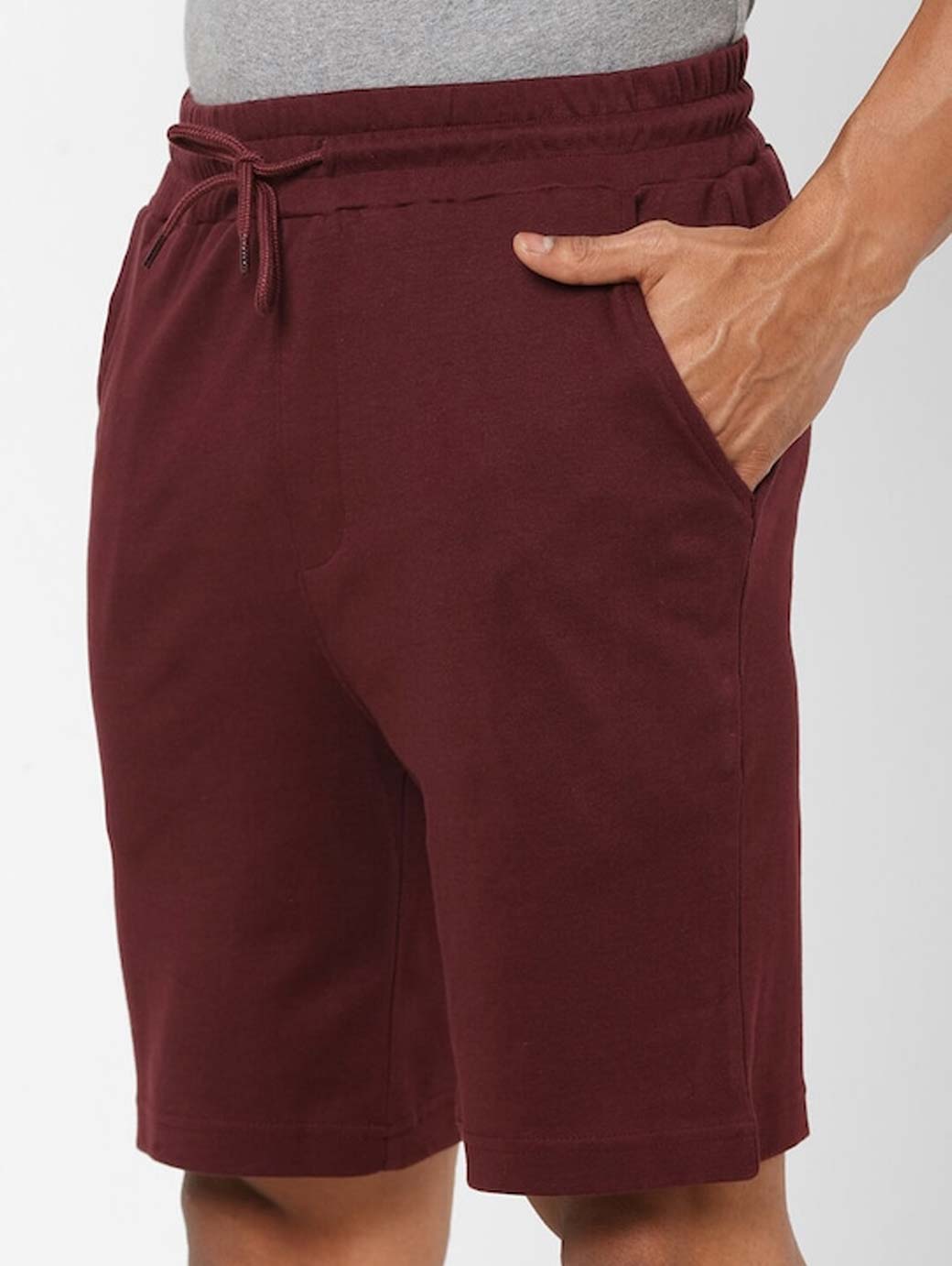 Maroon solid mid-rise lounge shorts, has 3 pockets, drawstring closure