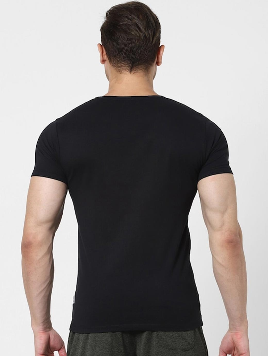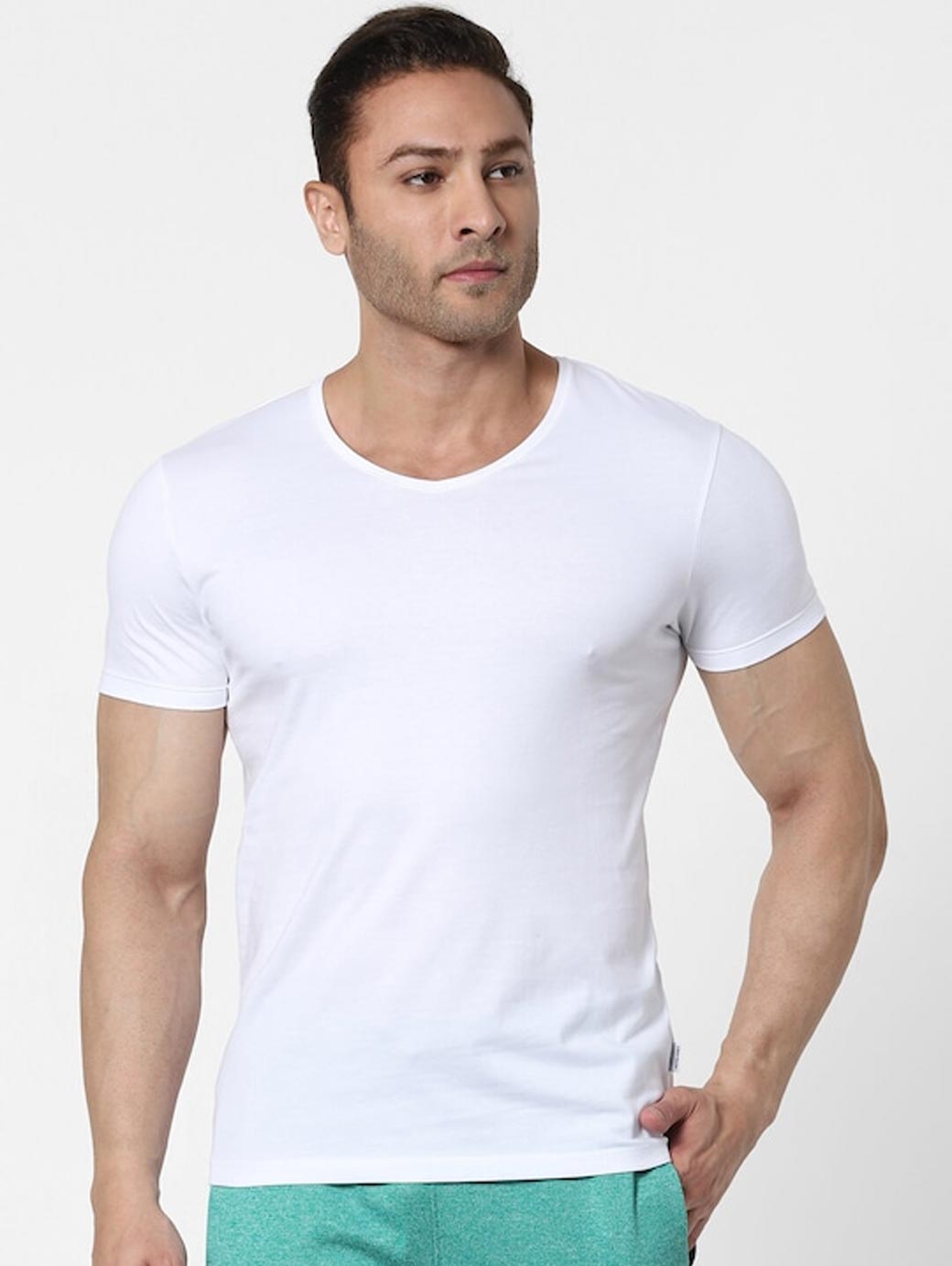 Pack Of 2 Solid Lounge T-shirts: White & black Solid Regular length V neck Short, regular sleeves Knitted cotton fabric
