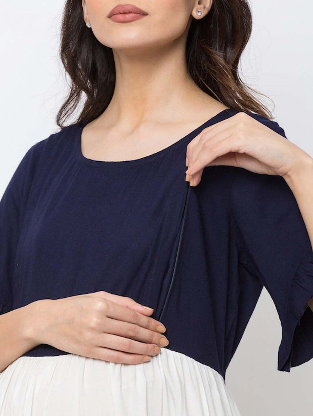 Navy Blue Colourblocked Maternity Nursing Fit & Flare Dress