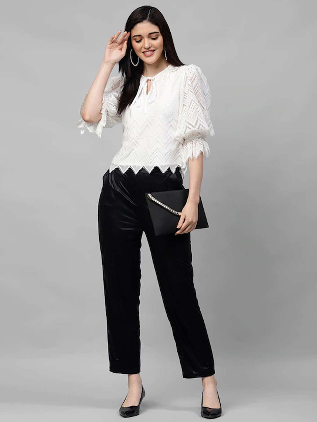 The model (height 5'8) is wearing a size S