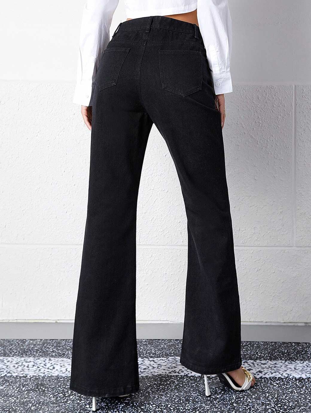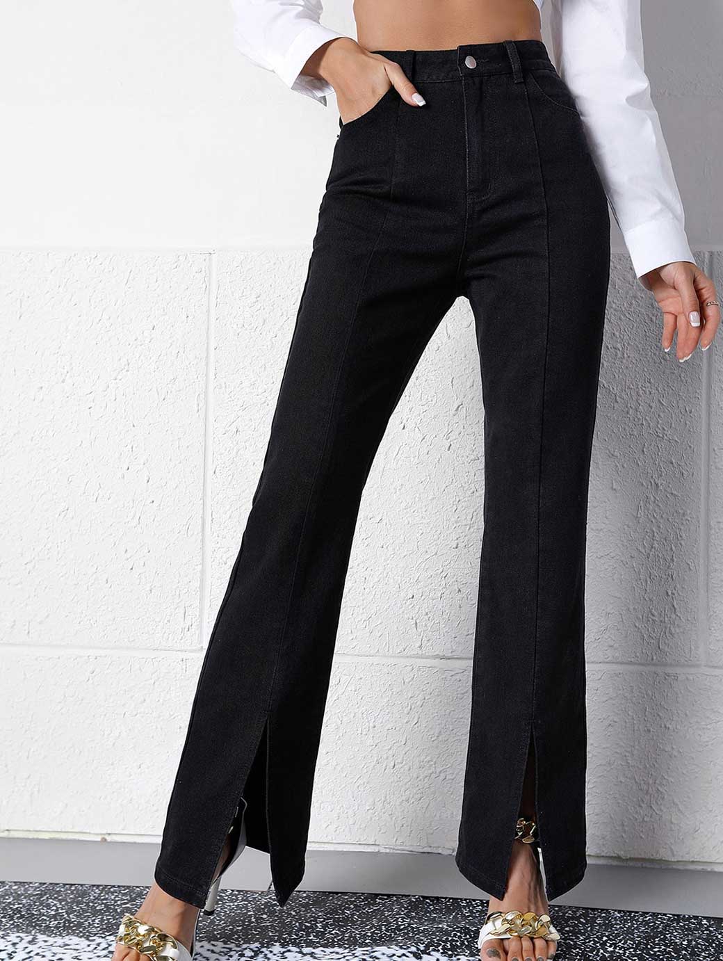 Women Black Wide Leg Slits Jeans