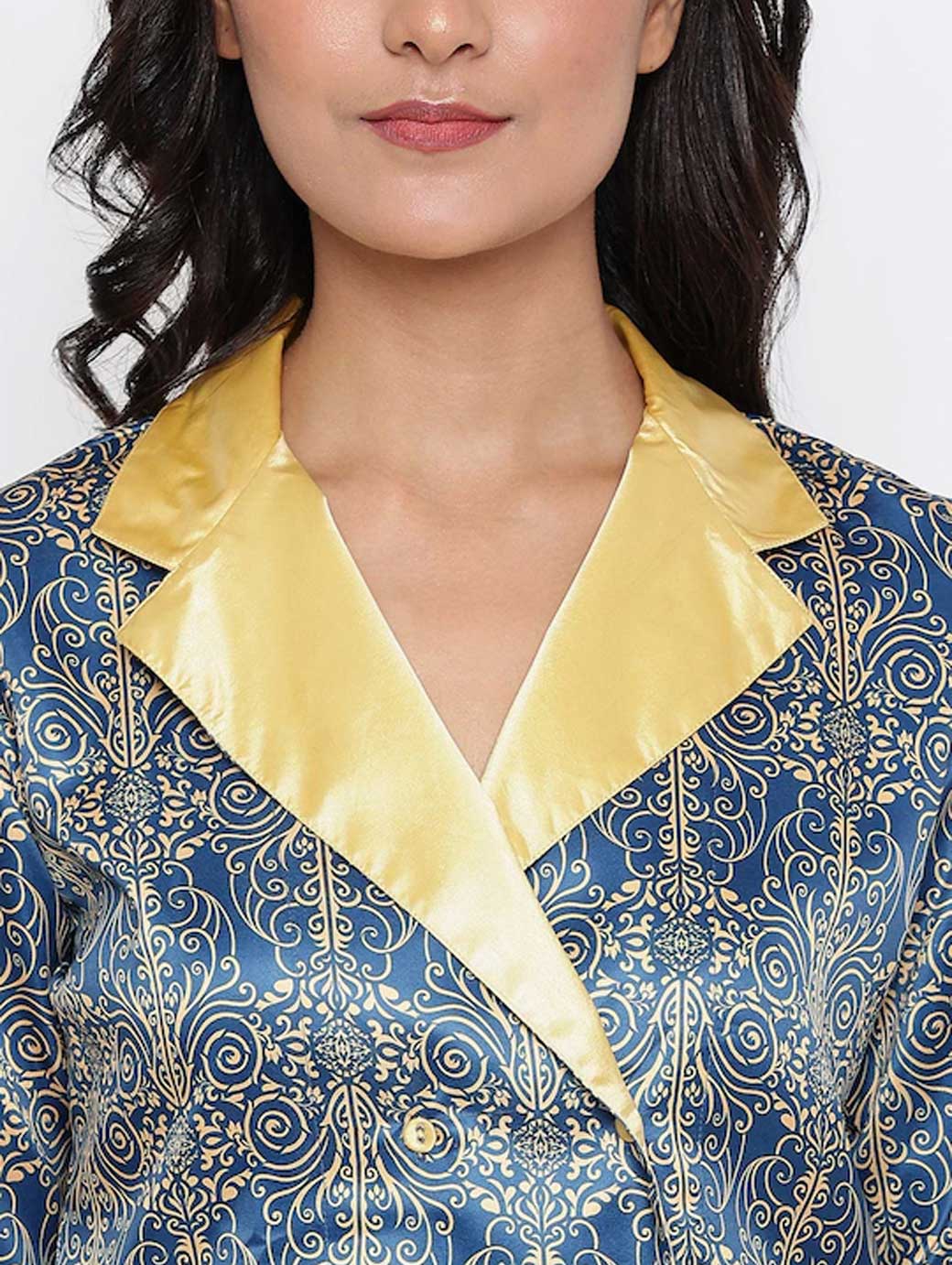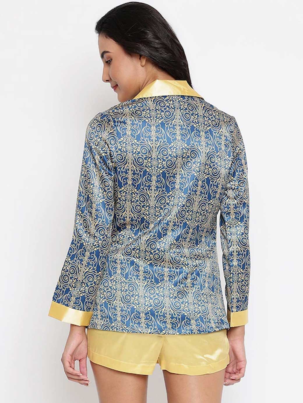 Women Blue & Yellow Printed Night Suit