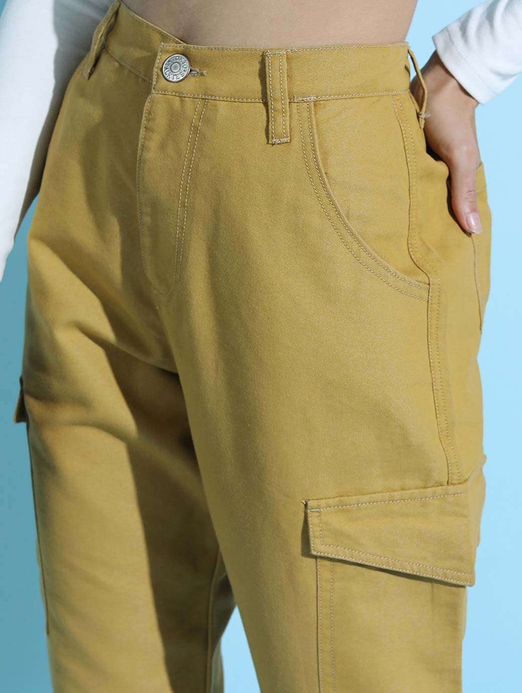 Coloured shade, no fade olive green jeans