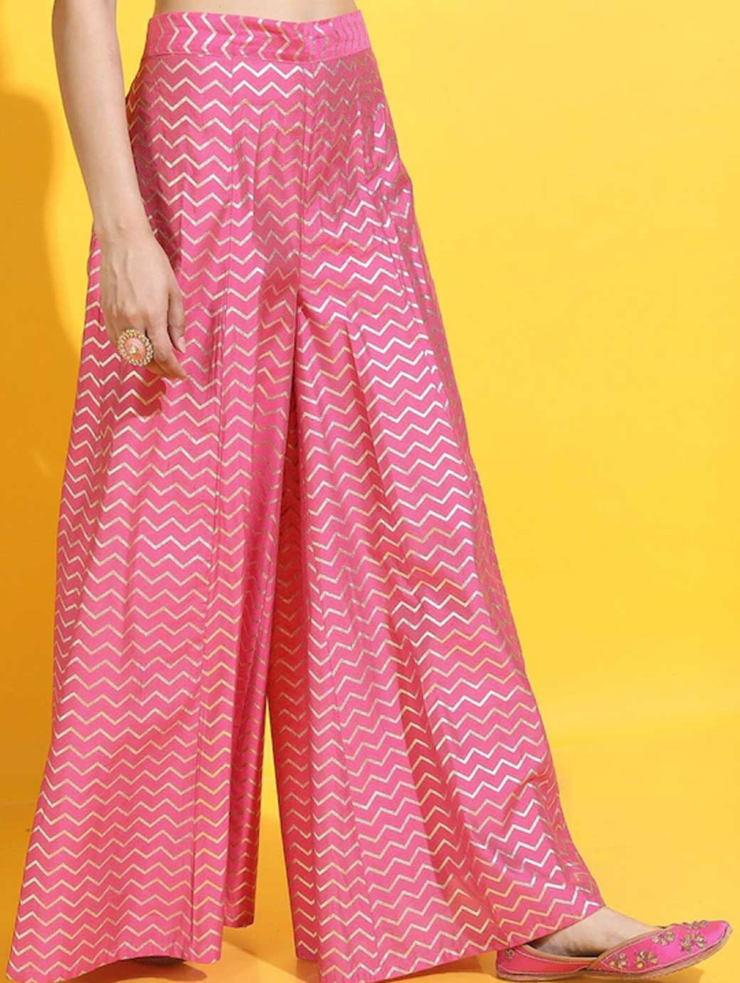 Smart and versatile, these mod palazzos will make for a worthy addition to your casual closet. These palazzos feature a lovely ethnic motifs print and flared fit.