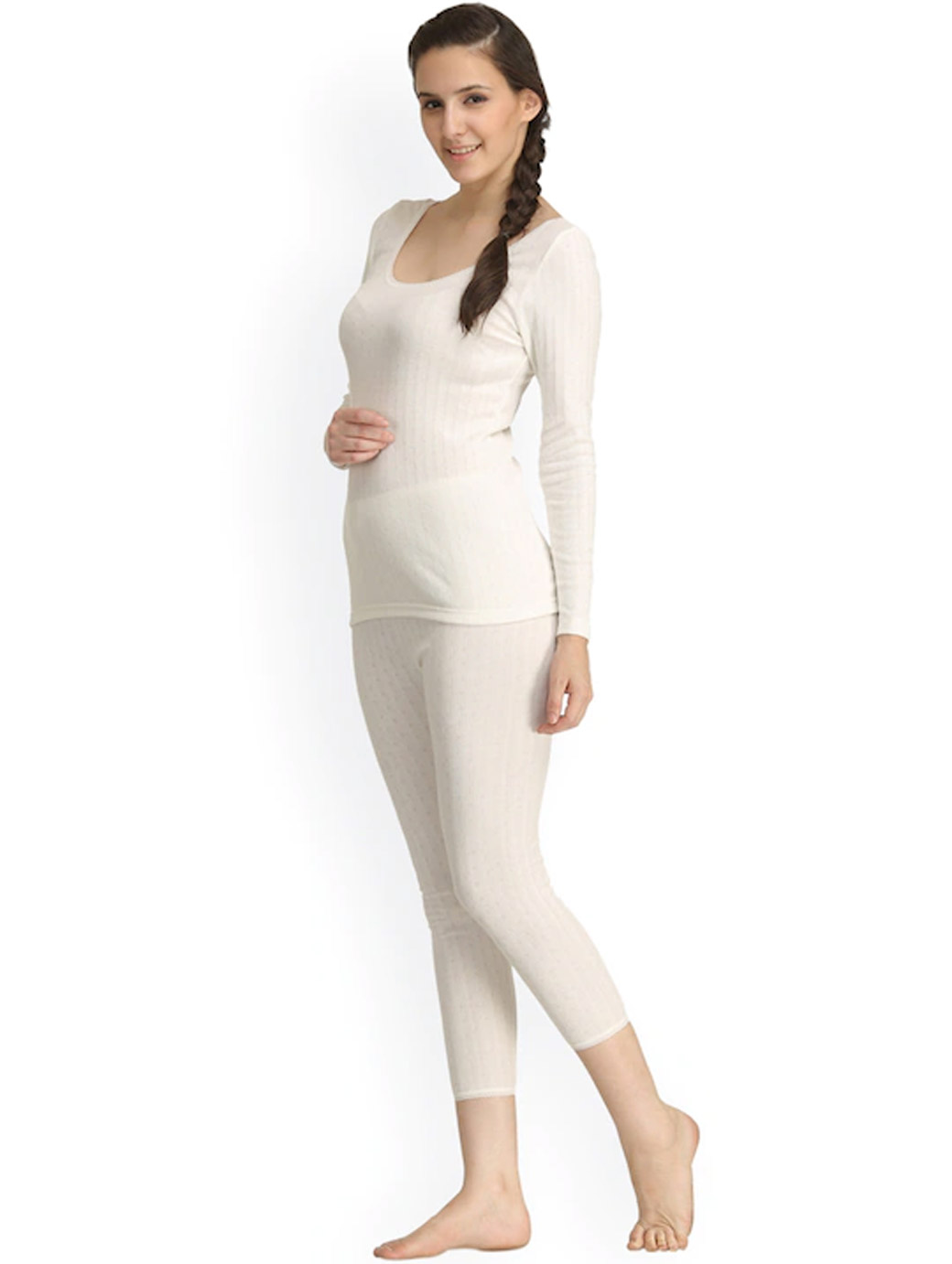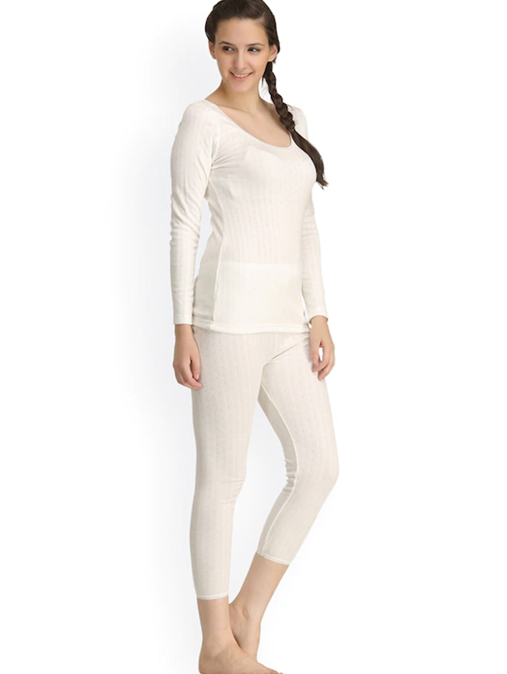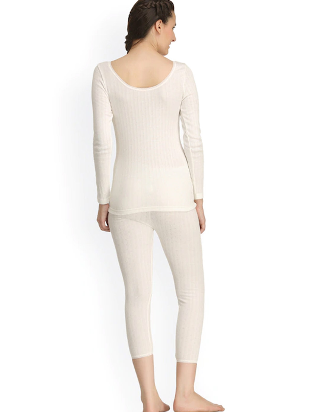 This off-white thermal set consists of a top and a pair of leggings